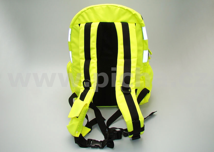 reflexní ruksak z materiálu a pásky certifikovaných dle GO/RT 3279 a EN 471, mat. 600D PE, objem 25 litrů | ||