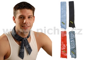 Čelenka chladící MIRACOOL bandana - ochránce před horkem a únavou, ideální pro hutníky, horníky, kováře, řidiče, stavební a skladové dělníky, zemědělce a další profese, pracující v teplém pracovním prostředí, ať již venku či uvnitř. Čelenku namočíte do vody, po nabobtnání gelové výplně aplikujete na část těla, kterou chcete odchladit. Po dobu několika hodin dochází k odpařování vody a na principu změny skupenství tekutého gelu na sypký prášek dochází k odebírání tepla z povrchu tepla a tím k jeho ochlazení. Možno používat opakovaně bez omezení!