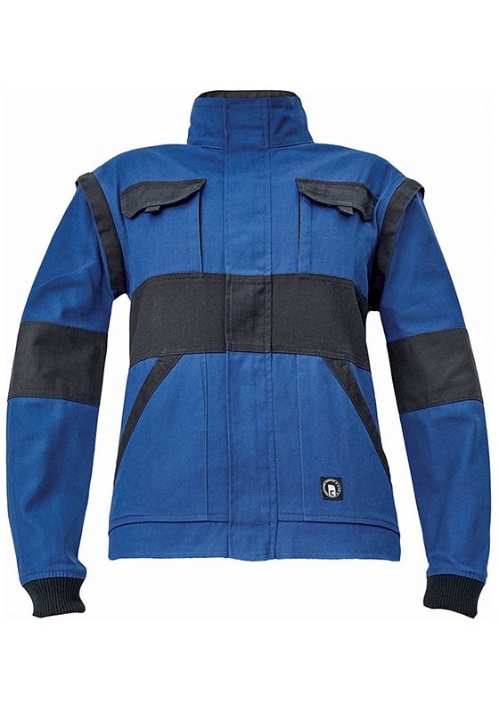Dámská montérková bunda ČERVA MAX NEO LADY 260 - odepínací rukáv - dámská pracovní bunda se zapínáním na zip krytým légou a odepínatelnými rukávy, dvě přední kapsy doplňují dvě náprsní kapsy, bunda má zesílené namáhané oblasti loktů a ramen, charakterizují ji také pružné manžety rukávů a spodního obvodu v pase, oděvy z linie MAX NEO jsou 100% bavlněné, přičemž materiál látky charakterizuje gramáž 260 g/m2, základní linie MAX NEO nemá žádné reflexní prvky ani pruhy, tato dámská pracovní montérková bunda ČERVA MAX NEO LADY 260 s odepínacími rukávy je v barevné kombinaci středně modrá/černá a tmavěmodrá (navy)/fialová, velikosti 34,36,38,40,42,44,46,48,50,52,54.