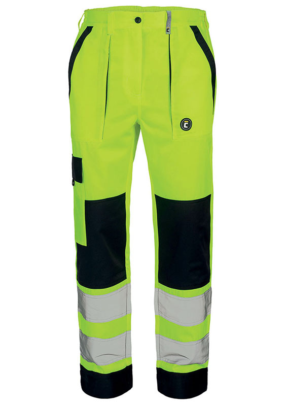 Díky výraznému HI-VIS materiálu v kombinaci žluté a černé barvy a dvěma širokým reflexním pruhům na spodní části nohavic budete nepřehlédnutelné i v těch nejhorších světelných podmínkách. Splňují normu EN ISO 20471 (Class: 2), což znamená, že jsou ideální pro práci v prostředí, kde je vysoké riziko špatné viditelnosti.