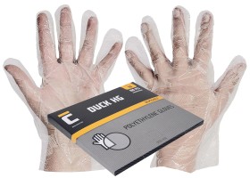 velikost 9,10, jednorázové rukavice z polyetylenové folie, pro krátkodobý styk s potravinami, možnost zavěšení | ||