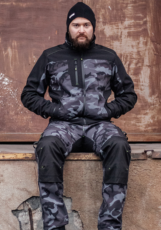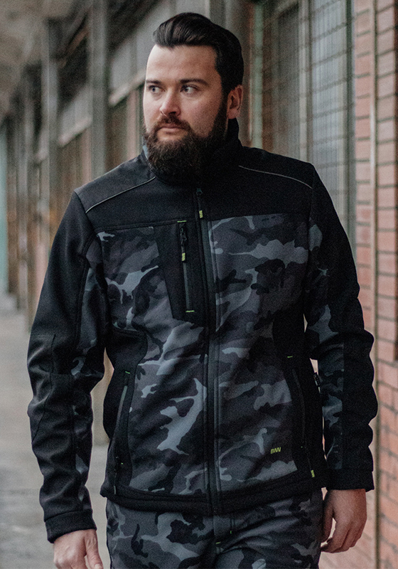 Maskáčová softshellová bunda BENNON CAMOS stretchová 340 - šedo-černá - když počasí nebere ohledy a práce nepočká