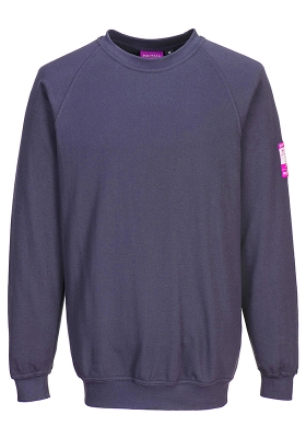 Mikina nehořlavá antistatická PORTWEST FR12 MODAFLAME 300 - navy - mikina je vyrobená z přirozeně nehořlavého materiálu Modaflame 60% Modakryl, 39% bavlna, 1% uhlíkové vlákna 300g/m2, ochrana proti sálavému, konvekčnímu a kontaktnímu teplu, chrání před nebezpečím způsobeným statickou elektřinou, tato schopnost se nesnižuje ani při opakovaném praní, jedná se o ochranný oděv certifikovaný dle CE - Kat.III splňující podmínky evropských norem EN ISO 11612 A1, B1, C1, F1 a EN 1149 -5, žebrované manžety a lem u pasu, vynikající barevná stálost a smršťovací výsledky, barva navy (tmavě modrá), velikosti XS,S,M,L,XL,XXL,3XL,4XL.