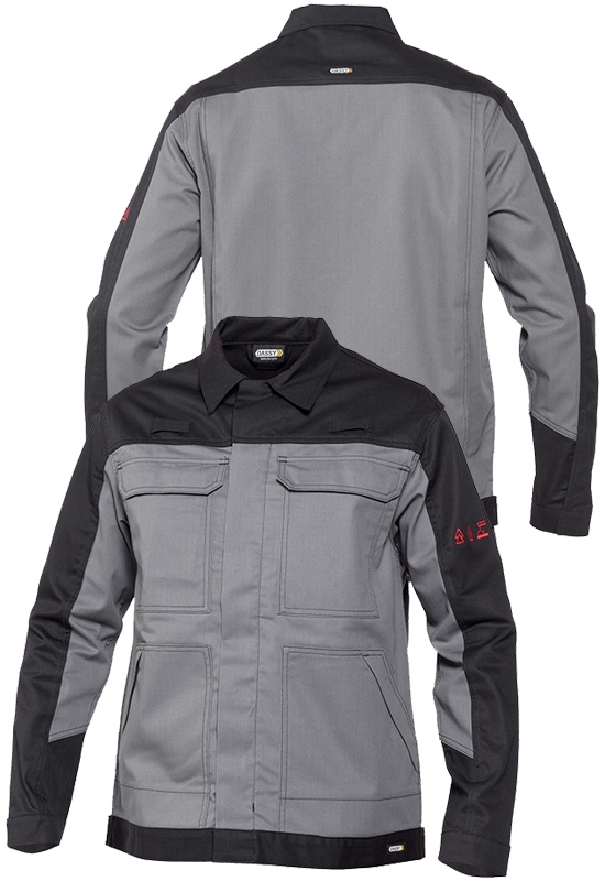 Nehořlavá pracovní bunda DASSY KIEL MULTINORM - 290 - antistatická - luxusní nehořlavá antistatická protichemická bunda, nastavitelné manžety se zapínáním na druk, nastavitelný pas se suchým zipem, dlouhý zip krytý klopou, krytý druk, sámky na zádech, prodloužená záda, 2 přední kapsy s klopou, 2 náprsní kapsy s klopou a krytým zapínáním, pouzdro na ID průkaz, vnitřní kapsa, 2 závěsná poutka, dvojité švy, testováno proti škodlivým látkám podle OEKO-TEX Standard 100 (0910058/Centexbel), 75% bavlna/24% polyester/1% Negastat, 290 g/m2, velikosti XS,S,M,L,XL,XXL,3XL,4XL.