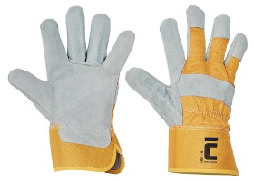 velikost 9-11, pracovní rukavice ze žluté hovězí štípenky s bavlněným hřbetem, podšívka ve dlani | ||