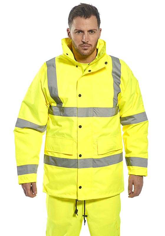 Reflexní bunda PORTWEST S460 Hi-Vis TRAFFIC do deště - žlutá - nepromokavá zateplená reflexní bunda s lepenými švy, které zabraňují pronikání vody, voda na povrchu vytvoří kapičky, které samovolně stečou, ochrana proti chladu, certifikovaná do -40 °C, vnitřní náprsní kapsa, vnitřní žebrované manžety pro větší teplo a pohodlí, celozateplené provedení pro uchování tepla a příjemného pocitu, nastavitelné manžety na suchý zip, dvoucestný zip pro rychlé otevření, vzor pásky Bio motion k lepšímu rozpoznání lidského tvaru těla na vzdálenost, reflexní páska pro lepší viditelnost, tkanina s hodnocením UPF 40+ k blokování 98% UV paprsků, 4 kapsy pro uložení věcí, skrytá kapsa na telefon, kapuce v límci, CE certifikace, označeno UKCA, tkanina 300D Industry: 100% polyester, 300D Oxford Weave s povrchovou úpravou odolnou proti skvrnám, dvojitý PU zátěr, 190g, vnitřní tkanina : 100% polyester 60g, tkanina pro výplň 100% polyester 170g, certifikováno podle EN ISO 20471 Třída 3, EN 343 Třída 3:1 X WP 15,000mm, EN 342 0.345 (M2.K/W), 2, X, ANSI/ISEA 107 typ R třída 3, ANSI/ISEA 107 typ P třída 3, AS/NZS 4602.1 třída D/N, velikosti XS,S,M,L,XL,XXL,3XL,4XL,5XL,6XL,7XL,8XL.