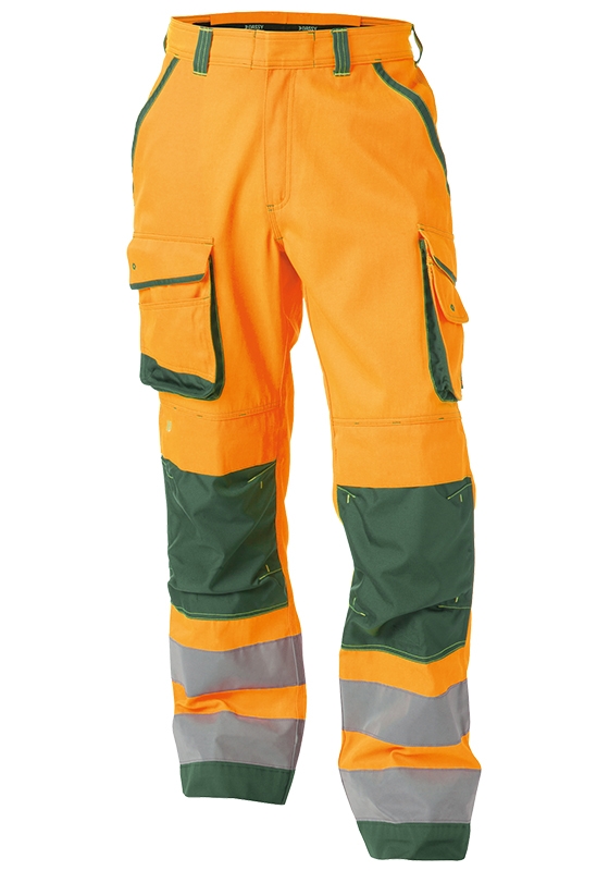 Reflexní kalhoty do pasu DASSY CHICAGO Hi-Vis - 290 - upravená délka - tyto kalhoty jsou v prodloužené nebo zkrácené délce, u prodloužených kalhot je vnitřní délka nohavice = 87 cm, u zkrácených kalhot je vnitřní délka nohavice =75 cm, díky vnitřní záložce můžete prodloužené i zkrácené kalhoty ještě jednoduše prodloužit (odpáráním záložky) o 5 cm,