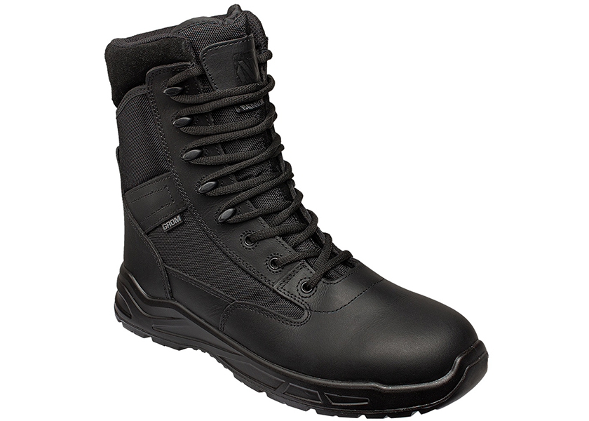 Taktická obuv BENNON BNN GROM Boot O1 SRC FO NM - poloholeňová - vysoká obuv bez ochranné špičky s odolnou podešví CRONUS XTR PU/PU, která má protiskluzové SRC vlastnosti, výhodou u této obuvi je odpružení v namáhané oblasti paty, je antistatická, neobsahuje žádné kovové součásti a je tedy NON METALLIC, odolává i pohonným hmotám FO, obuv nalezne uplatnění ve venkovním i vnitřním prostředá, tedy všude tam, kde je potřebná odolná obuv, která velmi dobře fixuje chodidlo jako např. bezpečnostní složky státu, military sport, jako vojenská taktická obuv, logistika, atd., vrchový kožený materiál je Buffalo full grain leather + textilie, textilní podšívka MESH, vkládací vložky WARRIOR trojkomponentní anatomické s odpružujícím prvkem v patě, obuv je certifikovaná jako pracovní dle normy EN ISO 20347:2012 O1 SRC FO, velikosti 36,37,38,39,40,41,42,43,44,45,46,47,48.