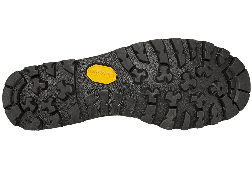 VIBRAM® 1206 EVA/pryž. Směs EVA pro lehkost a pryže pro trakci. Tato podešev má certifikovanou odolnost proti opotřebení a uklouznutí, s dezénem optimalizovaným pro smíšené povrchy. EVA část absorbuje energii v oblasti paty, což snižuje únavu, zatímco pryž zajišťuje přilnavost i na mokru.