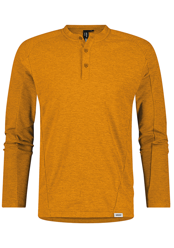 Tričko s dlouhým rukávem DASSY SERENGETI - 163 - 3 knoflíky u krku - tričko s dlouhým rukávem, kulatým výstřihem a zapínáním na knoflíky, antibakteriální úprava, základní vrstva pod bundu nebo vestu, snížený zadní panel, 60% recyklovaného polyamidu / 40% recyklovaného polyesteru, reflexní detaily, kulatý krk, zapínání na 3 knoflíky, prodloužená záda, vhodné pro vyšívání a potisk, spuštěné švy vytvářejí volnější, pohodlnější střih, předtvarované rukávy, OEKO-TEX Standard 100, bez obsahu PFC, 163 g/m2, barvy světle zelená, kouřová, zlatožlutá, tmavě šedá, cihlově červená, temně modrá, černá, velikosti XS,S,M,L,XL,XXL,3XL,4XL.