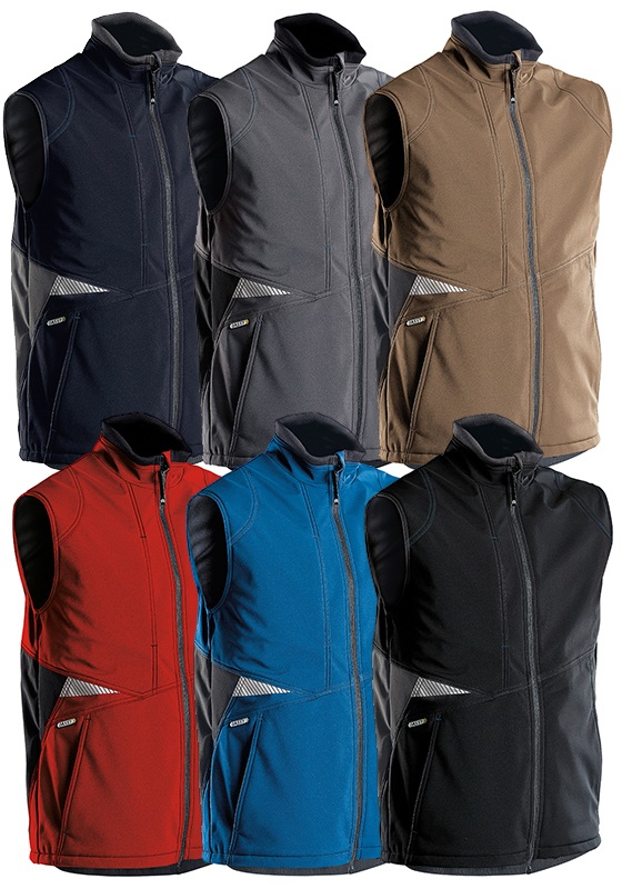 Vesta softshell DASSY FUSION - 280 - podšívka fleece - luxusní třívrstvá softshellová vesta s fleece podšívkou, zadní díl se zipem pro umožnění výšivky nebo potisku, dlouhý zip, zip s ochranou brady, úpletový límec, náplet v pase, 2 přední kapsy na zip, náprsní kapsa na zip, kapsa na mobil, kapsa na malý tablet, vnitřní kapsa, reflexní doplňky, fleecová podšívka, nepromokavá tkanina, větruodolná tkanina, prodyšná látka, hlavní látka: mechanický stretch, třívrstvý softshell s fleecovou podšívkou, dvojité švy, kontrastní prošití, zesílené sedlo, testováno proti škodlivým látkám podle OEKO-TEX Standard 100 (0910058/Centexbel), 100% polyester, 280 g/m2, WR = 5.000 mm, MPV = 5.000 g/m2/ 24 hodin, velikosti XS,S,M,L,XL,XXL,3XL,4XL.