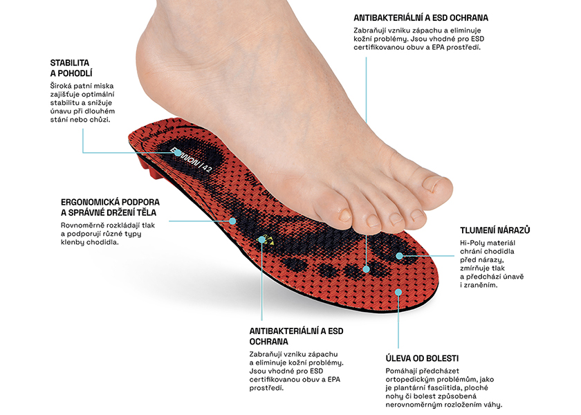velikost 35-50, pro osoby s nízkou klenbou, které potřebují pevnou a stabilní oporu, ESD s aktivním uhlím | ||