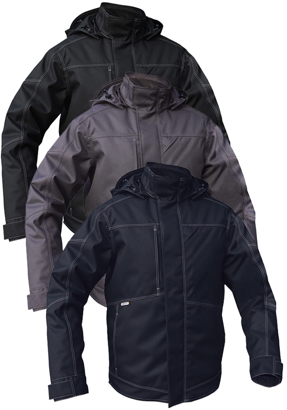 Zimní nepromokavá pracovní bunda DASSY MINSK - 240 - s kapucí - nápletové zateplovací manžety nastavitelné suchým zipem, dlouhý zip krytý klopou, krytý druk, zadní díl se zipem pro umožnění výšivky nebo potisku, zip s ochranou brady, prodloužená záda, 2 přední kapsy na zip, náprsní kapsa na zip, D-kroužek, 2 vnitřní kapsy, odnímatelná kapuce s elastickým uzávěrem, reflexní doplňky, prošívaná podšívka, nepromokavá tkanina, větruodolná tkanina, prodyšná látka, dvojité švy, kontrastní prošití, voděodolné lepené švy, voděodolný oděv, WR = 10000mm - MVP = 7000g/m2/24h, testováno proti škodlivým látkám podle OEKO-TEX Standard 100 (0910058/Centexbel), 100% polyester, 240 g/m2, velikosti XS,S,M,L,XL,XXL,3XL,4XL.