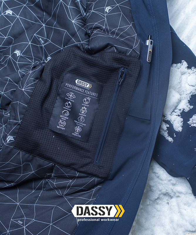 Zimní nepromokavá pracovní bunda DASSY NORDIX - 200 - s kapucí - - nastavitelné manžety se zapínáním na suchý zip a manžety proti větru z žebrované pleteniny, předformované rukávy, přizpůsobený střih, nastavitelný pas s elastickým stahovacím uzávěrem, Klopa na nejdůležitějších zipech, zádový díl na zip pro vyšívání nebo tisk, zip s ochranou brady, prodloužená záda, 2 přední kapsy na zip, kapsa na rukávu na zip, náprsní kapsa na zip, 2 vnitřní kapsy, kapsa na telefon s 3D mřížkováním, držák na tužku, odepínací kapuce s elastickým uzávěrem, reflexní lemování, steretchová podšívková tkanina, izolační polstrování vláknem DuPont (TM) Sorona®, nepromokavá tkanina, větruodolná tkanina, prodyšná látka, hlavní tkanina: 4-směrný stretch, kontrastní švy, nepromokavé lepené švy, nepromokavý oděv, testováno na škodlivé látky podle OEKO-TEX® Standard 100 (0910058 / Centexbel), 200 g/m2, velikosti XS,S,M,L,XL,XXL,3XL
