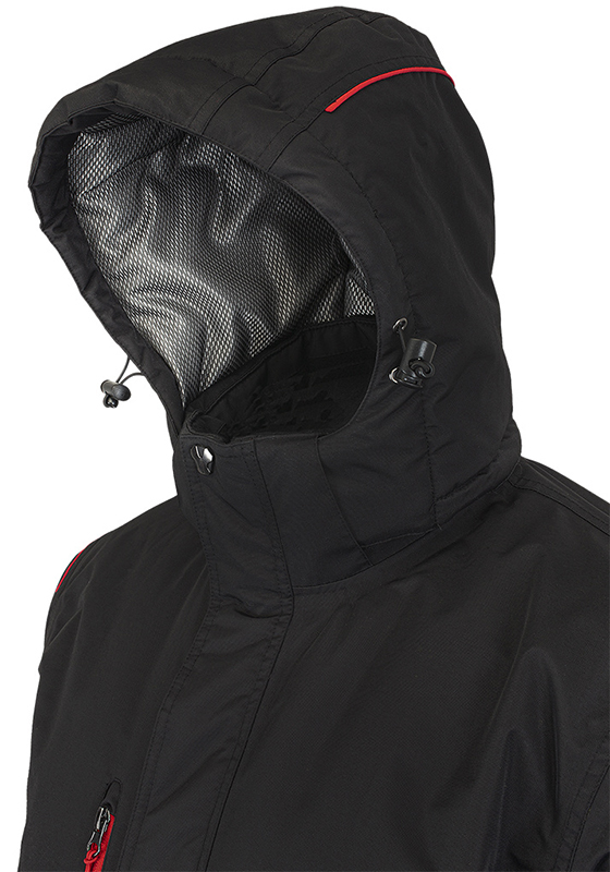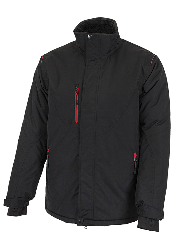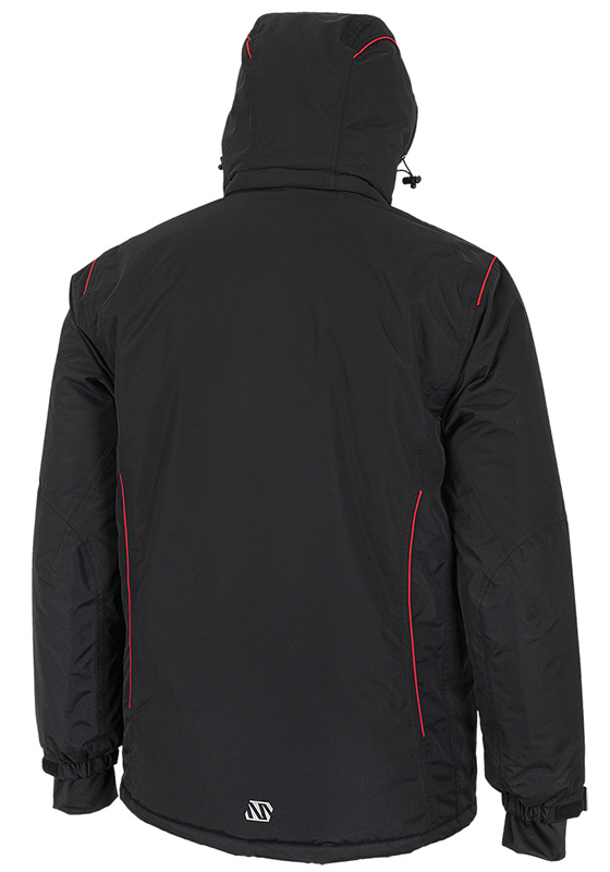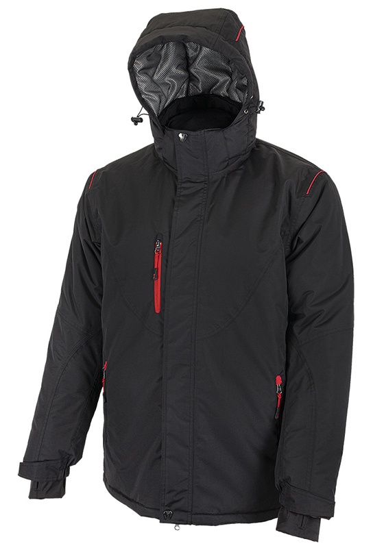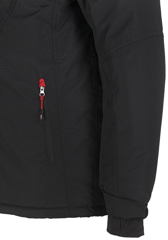 Tato bunda je navržená pro práci i vycházky v mokru, větru a mrazu. Odolná konstrukce s dvojitým šitím, spolehlivá voděodolnost mimo švy (vodní sloupec 8000 mm), chytré detaily pro pohodlí a bezpečnost a profesionální vzhled v černé s červenými akcenty. Přesně to, co očekáváte od kvalitního zimního pracovního a volnočasového vybavení.
