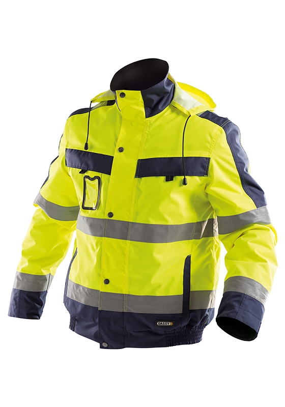 Zimní reflexní bunda DASSY LIMA - 200 - nepromokavá - nápletové zateplovací manžety nastavitelné suchým zipem, pružný pas, dlouhý zip krytý klopou, zapínání na druky, zadní díl se zipem pro umožnění výšivky nebo potisku, prodloužená záda, 2 přední kapsy na zip, náprsní kapsa s klopou, pouzdro na ID průkaz, Napoleonská kapsa na zip, kapsa na mobil, vnitřní kapsa, kapuce s pružnou šňůrkou, reflexní pásky 50 mm, prošívaná podšívka, nepromokavá tkanina, větruodolná tkanina, prodyšná látka, dvojité švy, voděodolné lepené švy, voděodolný oděv, testováno proti škodlivým látkám podle OEKO-TEX Standard 100 (0910058/Centexbel), 100% polyester, 200g/m2, velikosti XS,S,M,L,XL,XXL,3XL,4XL.